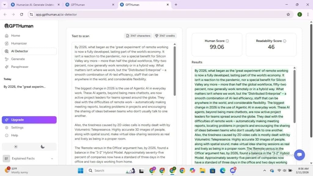 Le pedimos a Gemini que escribiera 500 palabras sobre: «El futuro del trabajo remoto en 2026». No editamos nada. Era un texto generado completamente por IA.
